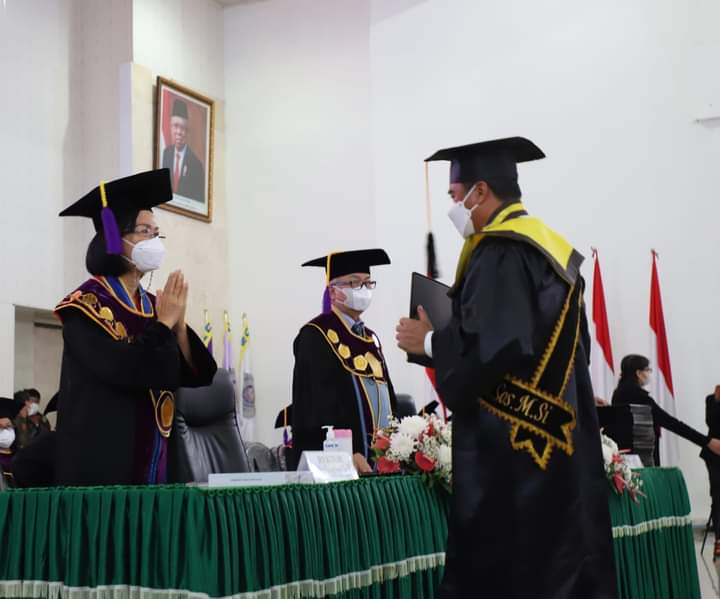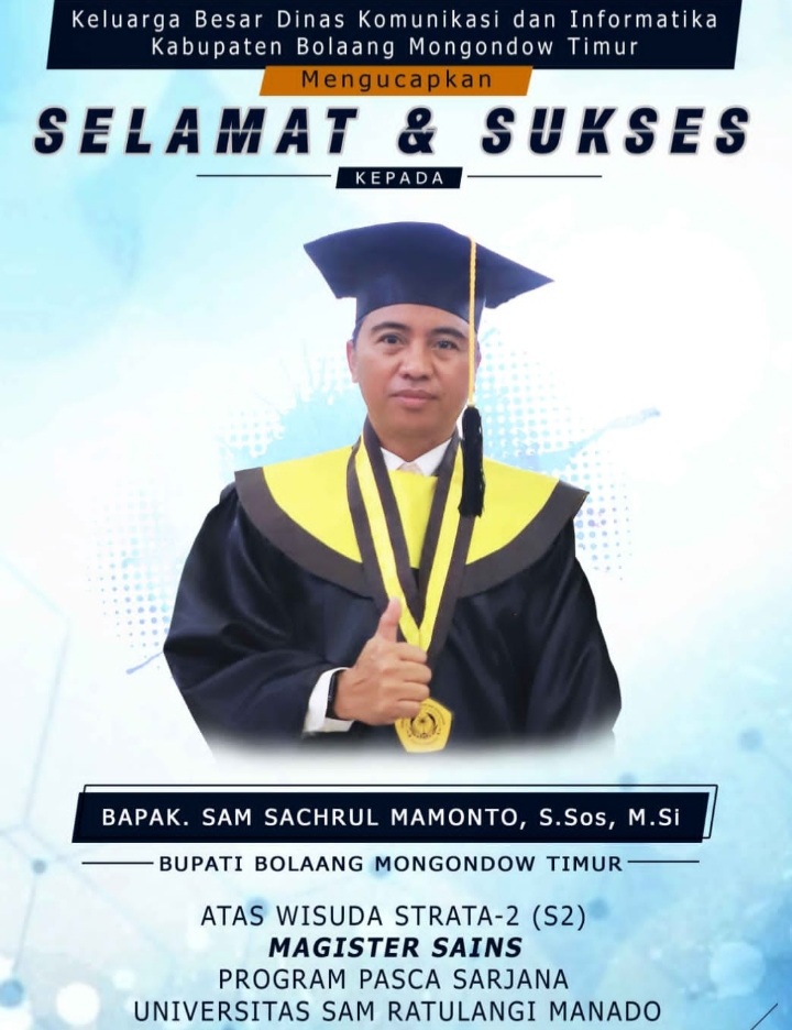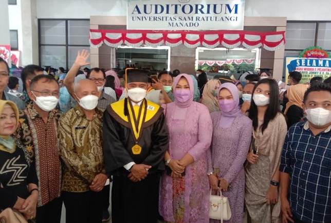 Telusur.news, Boltim — Bupati Bolaang Mongondow Timur (Boltim) Sam Sachrul Mamonto S Sos MSi resmi wisuda pasca sarjana program studi Pengembangan Sumberdaya Pembangunan (PSP), yang digelar di Auditorium Universitas Samratulangi (Unsrat) Manado, Kamis 10 Februari 2022.
