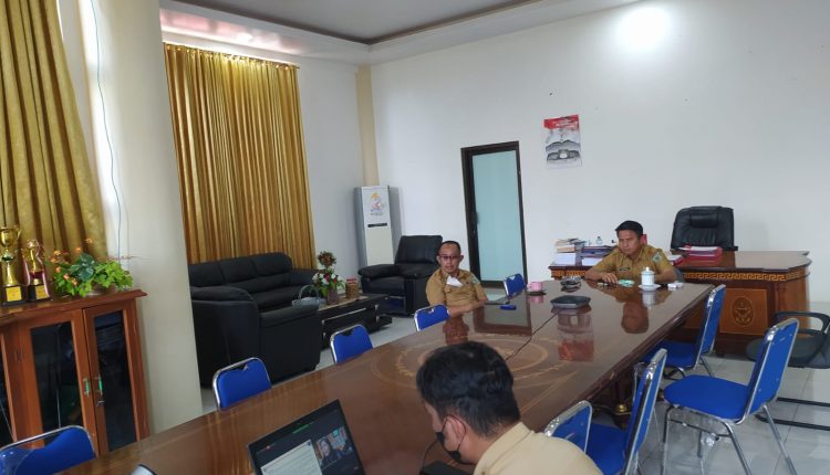 Zoom meeting dilaksanakan di ruang kerja Sekda Bolmong, turut diikuti Kepala Dinas Pendidikan Bolmong Renti Mokoginta. Selasa, 15 Februari 2022.