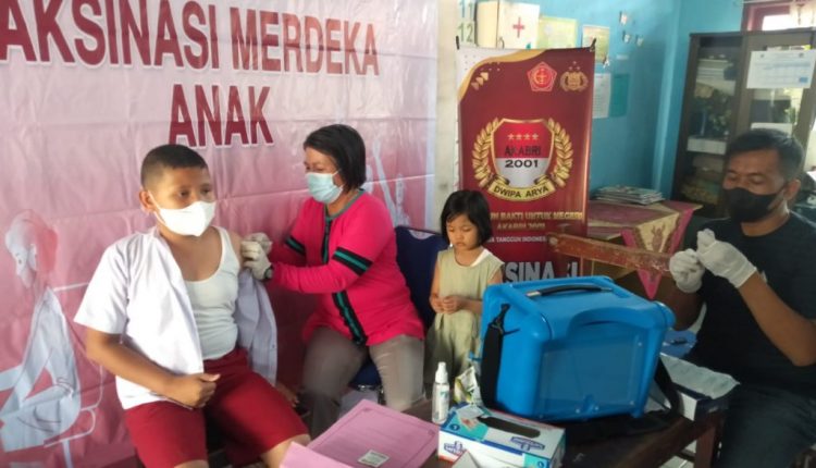 HUKRIM — Team Vaksinasi Polres Kotamobagu hingga saat ini gencar melaksanakan serbuan vaksinasi di sekolah-sekolah dasar (SD) di Kota Kotamobagu, selain sudah berbagi jadwal dengan Dinas Kesehatan, Puskesmas dan Kodim 1303/BM. Khusus polres kotamobagu juga melaksanakan kegiatan vaksinasi terjadwal setiap hari Sabtu yang dimulai sejak pagi hingga malam hari.