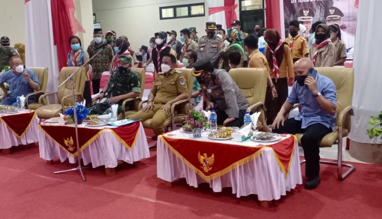 BOLTIM — Bupati Bolaang Mongondow Timur, Sam Sachrul Mamonto, S.Sos, M.Si bersama Kapolres Boltim dan Pabung Dandim 1303, Asisten II beserta jajaran SKPD menghadiri pelaksanaa vaksinasi  yang digelar di Kantor Bupati Boltim, Jumat, 25/02/22.