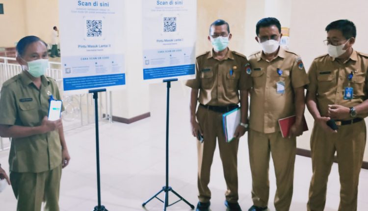 Melalui Dinas Kesehatan (Dinkes) Boltim, Selasa (15/3/2022) sudah memasang papan barcode tepat di pintu masuk lantai I dan II Kantor Bupati Boltim.