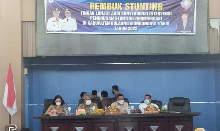 BOLTIM — Sebagai tindak lanjut aksi konvergensi intervensi penurunan stunting terintegrasi, Pemerintah Kabupaten Bolaang Mongondow Timur (Boltim), bersama BKKBN Sulut, Dinas Kesehatan, dan Dinas Capil, juga Dinas KB, Provinsi Sulawesi Utara (Sulut), menggelar remuk stunting, bertempat di lantai III Kantor Bupati, Selasa (22/3/2022).