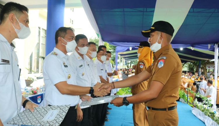 BOLTIM — 154 Calon Pegawai Negeri Sipil (CPNS) dan 28 Pegawai Pemerintah dengan Perjanjian Kerja (PPPK) di Lingkungan Pemerintah Kabupaten (Pemkab) Bolaang Mongondor Timur (Boltim), menerima Surat Keputusan (SK) bupati tentang penetapan CPNS dan PPPK, bertempat di Halaman Kantor Bupati, Rabu (30/3).