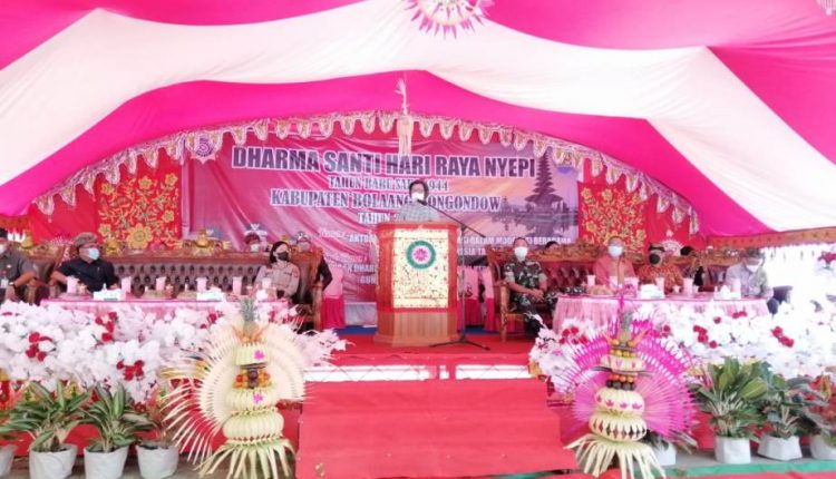 Bupati Yasti dalam sambutannya menyampaikan selamat hari raya nyepi tahun baru saka 1944 kepada umat hindu se-Bolmong serta memberikan apresiasi kepada pengurus Parisade Hindu Dharma Bolmong atas diaelenggarakannya acara tersebut.