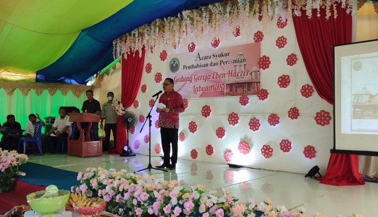 Dalam kesempatan tersebut, Bupati Limi Mokodompit, menyampaikan ucapan selamat dan penghargaan serta apresiasi kepada panitia pelaksana pembangunan gereja dan segenap para jemaat Gereja Eben Haezer Labuan Uki, atas perjuangan kerja keras yang dilandasi iman dan percaya pada Tuhan, sehingga gedung ini dapat diresmikan.