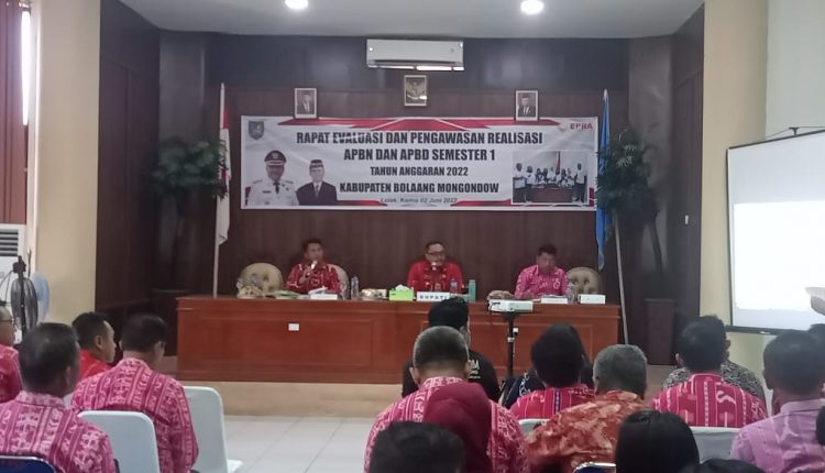 Telusur.news, Bolmong – Limi Mokodompit semenjak di lantik sebagai Pj Bupati Bolaang Mongondow untuk pertama kalinya melakukan evaluasi anggaran APBN dan APBD semester 1.