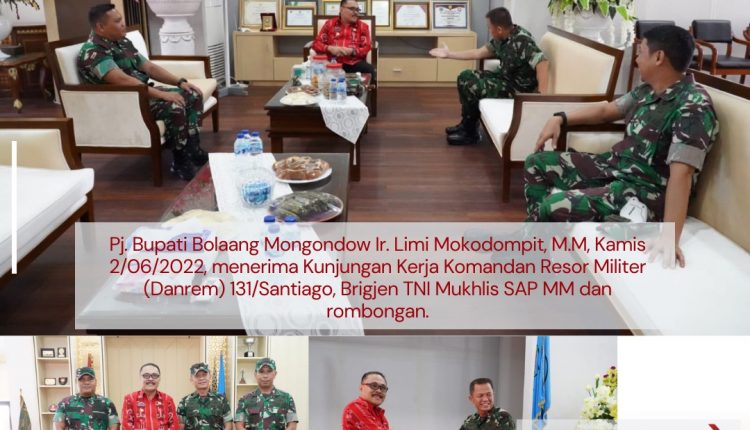 Telusur.news, Bolmong – Pejabat (Pj) Bupati Bolaang Mongondow (Bolmong), Ir Hi Limi Mokodompit MM, menerima Kunjungan Kerja (Kunker) Komandan Resort Militer (Danrem) 131/Santiago, Brigjen TNI Mukhlis SAP MM, Kamis (02/06/2022).