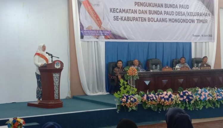 BOLTIM — Bunda Pendidikan Anak Usia Dini (PAUD) tingkat kecamatan dan desa se – Kabupaten Bolaang Mongondow Timur (Boltim) resmi dikukuhkan.