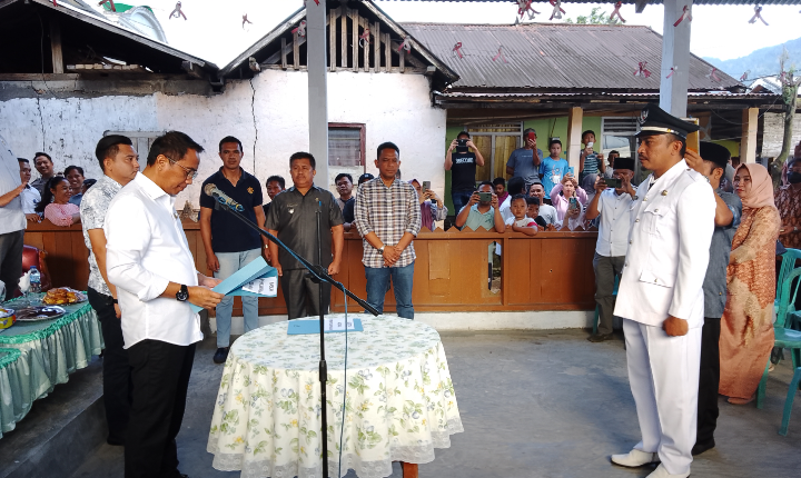 Prosesi pelantikan dan pengambilan sumpah jabatan digelar di kantor desa setempat, Jumat 1 Juli 2022.