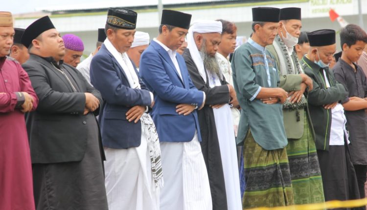 BOLTIM — Bupati Bolaang Mongondow Timur (Boltim) Sam Sachrul Mamonto, S.Sos, M.Si, melaksanakan Shalat Idul Adha I443 Hijriah, tahun 2022 bersama Ketua TP PKK Boltim, Ny Seska Ervina Budiman dan masyarakat Kotabunan-Bulawan, di Lapangan Bogani Kotabunan, Minggu (10/7 /2022).