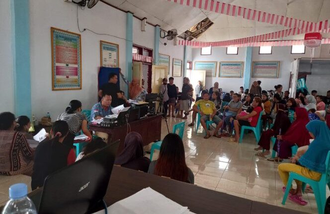 BOLTIM — Memasuki hari kedua pelayanan Dinas Kependudukan dan Pencatatan Sipil (Disdukcapil) Bolaang Mongondow Timur (Boltim), di Kantor Kecamatan Modayag Barat, Kamis (01/09/2022), terpantau antusias masyarakat cukup tinggi.