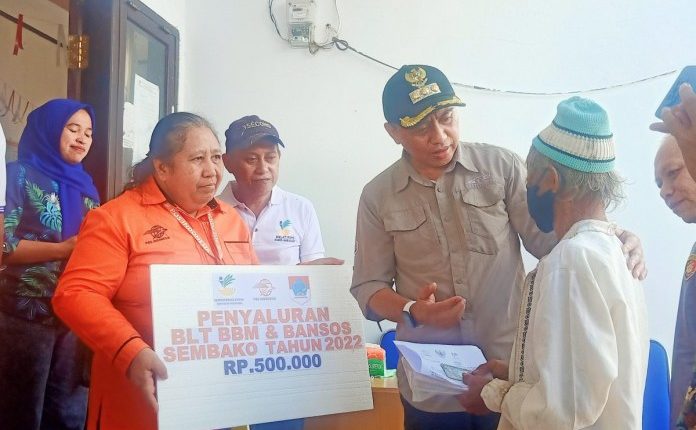 BOLTIM — Bupati Sam Sachrul Mamonto, menyerahkan secara simbolis Bantuan Langsung Tunai Bahan Bakar Minyak (BLT BBM) bagi masyarakat penerima manfaat.