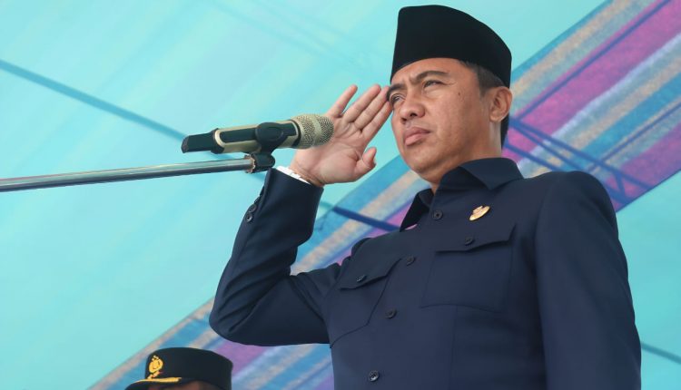 Dalam upacara yang digelar di Halaman Kantor Bupati Boltim ini, bupati Boltim, Sam Sachrul Mamonto bertindak sebagai inspektur upacara