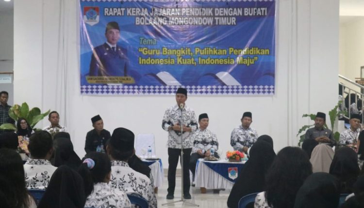 Rapat kerja yang dilaksanakan di Lantai I, Kantor Bupati Boltim, ikut dihadiri Sekda Sonny Warokah, Asisten I Rahman Hulalata, Asisten II MR Alung, Asisten III Rusmin Mokoagow, dan Kadis Dikbud Yusri Damopolii, serta seluruh guru se Kabupaten Boltim.