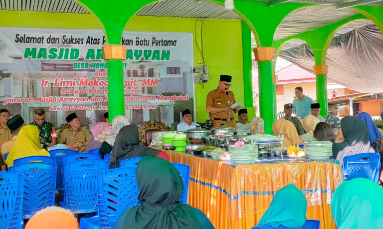 Telusur.news, Bolmong — Bupati Limi Mokodompit meletakan batu pertama pembangunan Masjid Ar-Rayyan di Desa Mongkoinit, Kecamatan Lolak, kabupaten Bolaang Mongondow, Senin 12 Desember 2022.
