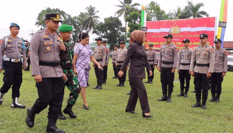 Ir. Hj. Tatong Bara membacakan amanat kepala Kapolri tentang kesiapan pengamanan Nataru diseluruh wilayah Indonesia dimana Polri dengan dukungan TNI dan pemerintah daerah akan menggelar operasi Lilin 2022 selama 11 hari dimulai tanggal 23 Desember 2022 sampai 2 Januari 2023.