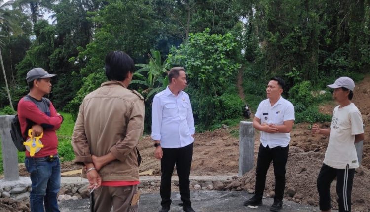 Dimana tampak Bupati Boltim Sam Sachrul Mamonto didampingi Kepala Dinas Pekerjaan Umum Haris Pratama Sumanta bersama Kabid Bina Marga Zulkifly Mokoagow dan sejumlah sangadi melakukan peninjauan di lokasi pekerjaan proyek.