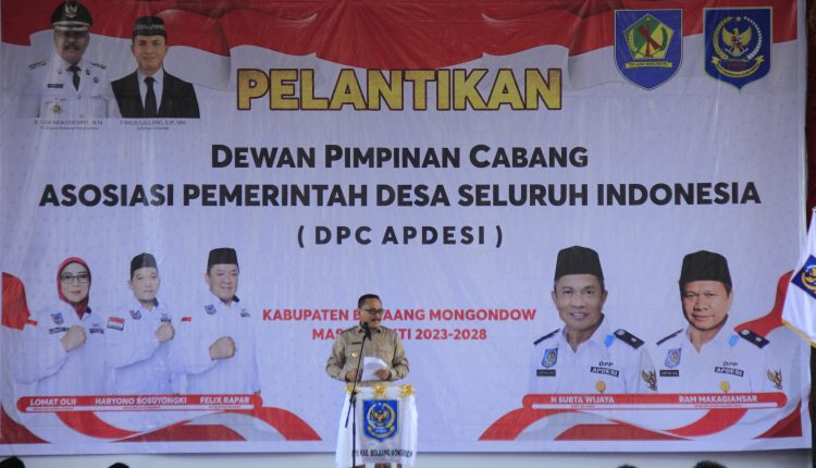 BOLMONG — Bupati Limi Mokodompit secara resmi melantik pengurus Dewan Pimpinan Cabang Asosiasi Pemerintah Desa Seluruh Indonesia (APDESI) di Kabupaten Bolaang Mongondow periode 2023-2028.
