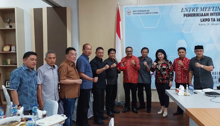 BOLMONG — Bupati Bolaang Mongondow (Bolmong) Limi Mokodompit bersama Sekretaris daerah (Sekda) Bolmong Tahlis Gallang SIP MM bersama sejumlah pimpinan OPD turut dampingi bupati menerima Kunjunga Kerja (Kunker) Ketua dan Anggota DPRD Provinsi Sulawesi Utara (Sulut), Kamis 26 Januari 2023.