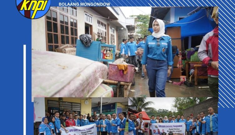 BOLMONG — Pengurus DPD Komite Nasional Pemuda Indonesia (KNPI) Kabupaten Bolaang Mongondow turut prihatin atas musibah yang menimpah warga korban banjir dan longsor di Kota Manado. Kamis, (2/2/2023), dipimpin langsung oleh Ketua DPD KNPI Bolmong Feramitha Tiffani Mokodompit, memberikan bantuan kepada korban banjir di Kota Manado.