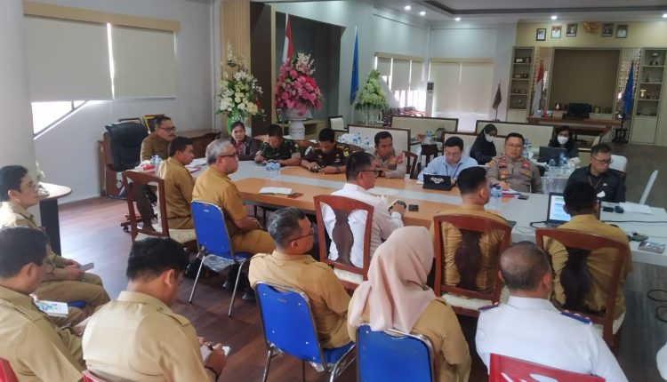 BOLMONG — Bupati Limi Mokodompit memimpin rapat koordinasi terpadu pengendalian inflasi di Kabupaten Bolaang Mongondow Tahun 2023.