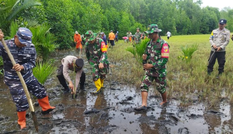 “Kegiatan ini juga sebagai bentuk sinergitas TNI-Polri terhadap pelestarian lingkungan, utamanya pencegahan terhadap abrasi pantai, mangrove memiliki banyak manfaat terhadap lingkungan, dan menjadi daya dukung pemulihan habitat ekosistem laut,” ujarnya