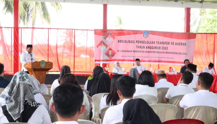 BOLSEL – Wakil Bupati Bolaang Mongondow Selatan (Bolsel) Deddy Abdul Hamid membuka acara Sosialisasi Pengelolaan Transfer ke Daerah Tahun Anggaran 2023 di lingkungan Pemkab Bolsel, Rabu (22/02/2023)