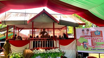 BOLMONG — Peringatan Hari Peduli Sampah Nasional (HPSN) tahun 2023 dilaksanakan dengan penanaman pohon dan pengembangan proklim untuk zero emisi di Desa Bintau, Selasa (14/3/2023).