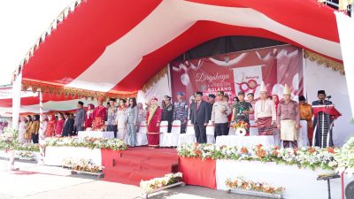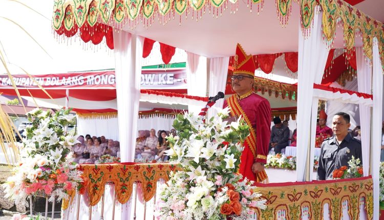 BOLMONG — Pemerintah Kabupaten (Pemkab) Bolaang Mongondow (Bolmong) melaksanakan upacara peringatan HUT Kabupaten ke-69 Tahun 2023.