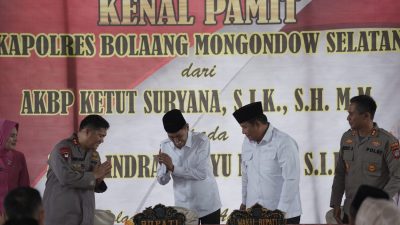 “Saya berharap kehadiran Kapolres Bolsel yang baru dapat tetap mempertahankan hubungan kerjasama yang baik dengan Forkopimda serta memberikan motivasi baru agar Kabupaten Bolaang Mongondow Selatan dapat berkembang menuju ke arah yang lebih baik lagi,” ujarnya.