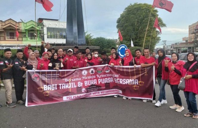 KOTAMOBAGU — DPC PDI Perjuangan Kota Kotamobagu membagikan 1.500 paket takjil di pusat kota dan lakukan anjangsana ke Panti Asuhan Ar Rahman Mongkonai, Rabu (14/4/2023) sore.