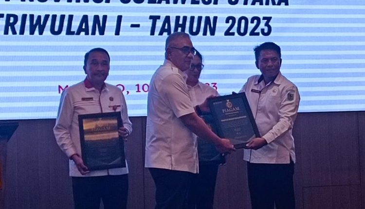 BOLMONG – Sekretaris Daerah (Sekda) Kabupaten Bolaang Mongondow Tahlis Gallang SIP MM menerima penghargaan terbaik ketiga se Provinsi Sulawesi Utara dalam kepatuhan pembayaran iuran jaminan kesehatan bagi pekerja penerima upah pekerja dilingkungan pemerintah daerah tahun 2022. Penghargaan diserahkan langsung oleh Sekretaris Provinsi Steve Kepel mewakili Gubernur Sulawesi Utara Olly Dondokambei di Ballroom Centra Hotel-Minahasa Utara, Rabu (10/05/2023).