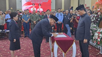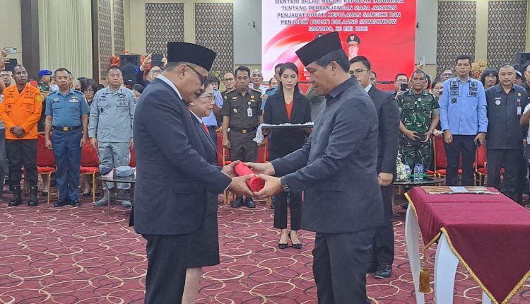 Pelantikan Pj Bupati Bolmong Limi Mokodompit dilaksanakan di Ruangan C J Rantor Kantor Gubernur Sulut pada Selasa, 22 Mei 2023.