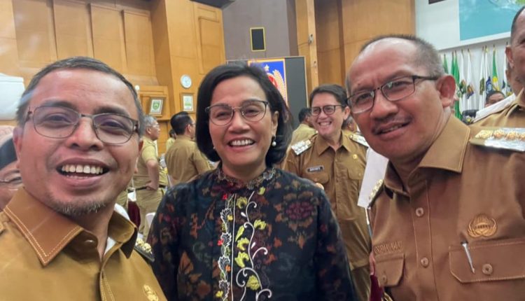 Telusur.news, NASIONAL – Penjabat Bupati Bolaang Mongondow Utara (Bolmut) Sirajudin Lasena dan Penjabat Walikota Kotamobagu Asripan Nani Selfie bersama dengan menteri Keuangan Sri Mulyani digedung Istana Negara di Jakarta Senin 30/10/2023