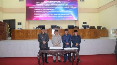 Rapat paripurna itu dipimpin Ketua DPRD Bolmong Welty Komaling, didampingi 2 Wakil Ketua yakni Sulhan Manggabarani dan Sukron Mamonto serta dihadiri para anggota DPRD lainnya.