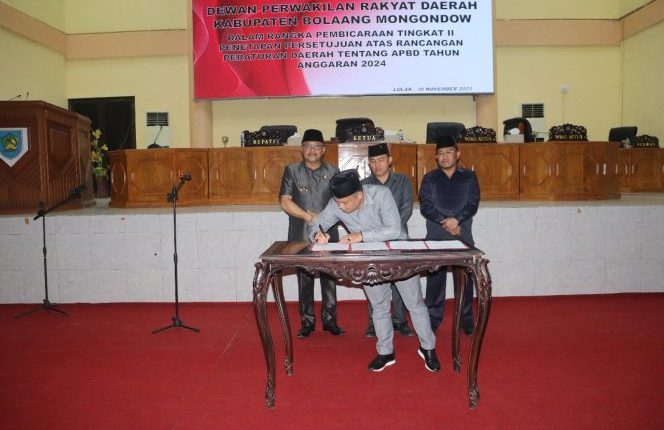 Sementara itu, Penjabat Bupati Bolmong Limi Mokodompit dalam sambutannya mengucapkan terima kasih kepada segenap pimpinan dan seluruh anggota DPRD Bolmong yang telah selesai membahas, serta memberikan masukan, koreksi, dan saran positif terhadap penyempurnaan Ranperda APBD 2024. Sehingga pada saat ini dapat ditetapkan menjadi Peraturan daerah (Perda).