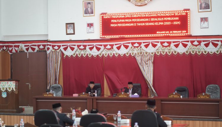 Telusur.news BOLSEL – Dewan Perwakilan Rakyat Daerah (DPRD) Kabupaten Bolaang Mongondow Selatan (Bolsel), menggelar rapat paripurna penutupan masa persidangan I sekaligus pembukaan masa persidangan ll tahun sidang ke V 2023-2024, yang dilaksanakan di ruangan kantor DPRD Bolsel, Senin (26/02/2024).