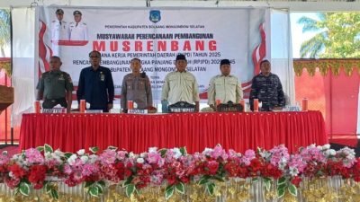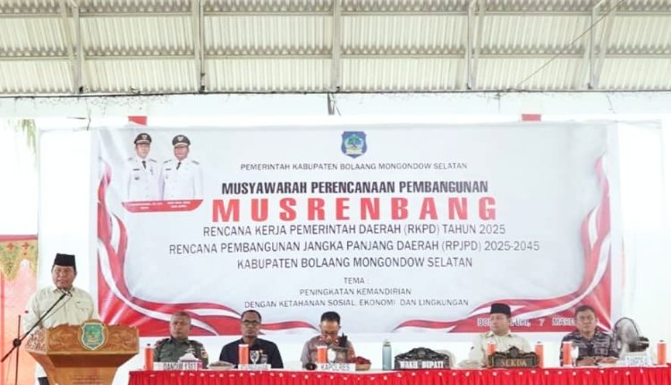 Telusur.news, BOLSEL – Pemerintah Kabupaten (Pemkab) Bolaang Mongondow Selatan (Bolsel) Menggelar Kegiatan Musyawarah Perencanaan Pembangunan (Musrenbang) Rencana Kerja Pemerintah Daerah (RKPD) Tahun 2025 dan Rencana Pembangunan Jangka Panjang Daerah (RPJPD) 2024-2045, di Lapangan Futsal, Kawasan Perkantoran Panango, Desa Tabilaa. pada Kamis, 07 Maret 2023.