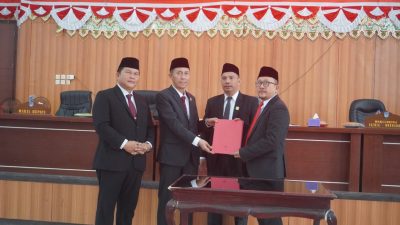 Telusur.news, BOLSEL – Dewan Perwakilan Rakyat Daerah (DPRD) Kabupaten Bolaang Mongondow Selatan (Bolsel), menggelar rapat Paripurna tahap II Penyampaian Laporan Keterangan Pertanggungjawaban (LKPJ) Kepala Daerah Tahun Anggaran 2023 dan pembicaraan tingkat II atas penetapan Rancangan Peraturan Daerah (Ranperda) tentang perlindungan perempuan dan anak. Rabu, (08/05/2024).
