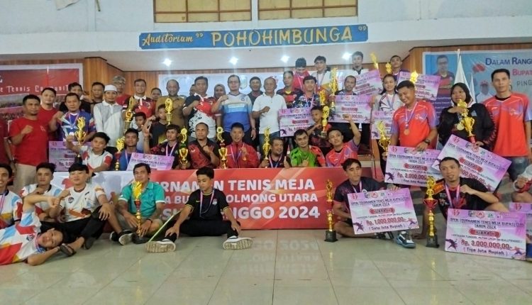Telusur. News – BOLMUT – PJ Bupati Bolaang Mongondow Utara (Bolmut), Sirajudin Lasena resmi tutup kegiatan Open Turnamen Tenis Meja Bupati Cup tahun 2024.