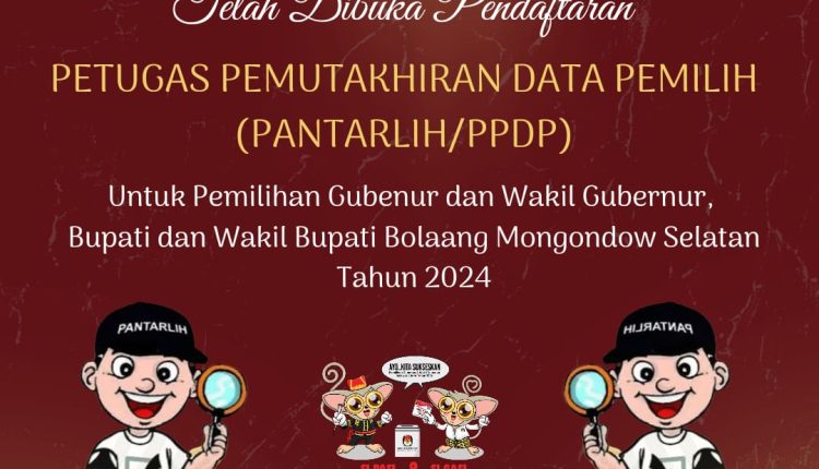 elusur.news, BOLSEL – Komisi Pemilihan Umum (KPU) Kabupaten Bolaang Mongondow Selatan (Bolsel), akan membuka pendaftaran anggota Petugas Pemutakhiran Data Pemilih (Pantarlih) untuk Pemilihan Gubernur dan Wakil Gubernur serta Bupati dan Wakil Bupati tahun 2024.