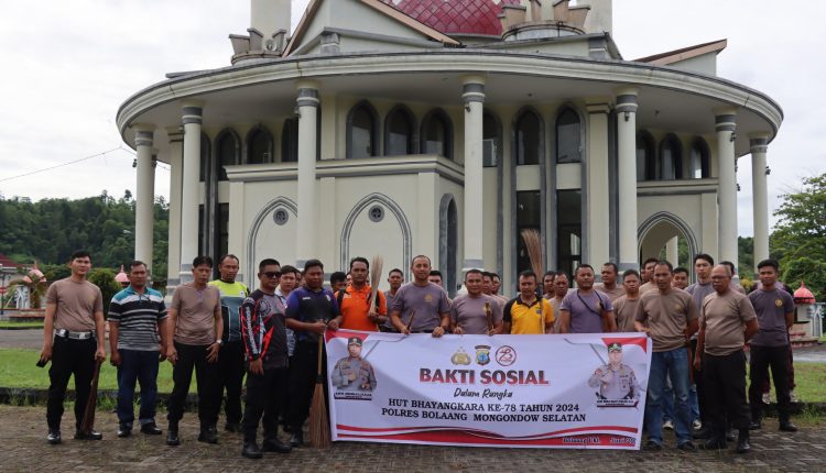 Telusur.news, BOLSEL – Mengisi rangkaian kegiatan peringatan Hari Bhayangkara ke-78 tahun, Jum’at tadi, (14/06/2024), jajaran Kepolisian Resort (Polres) Kabupaten Bolaang Mongondow Selatan (Bolsel), mengelar bakti sosial religi.