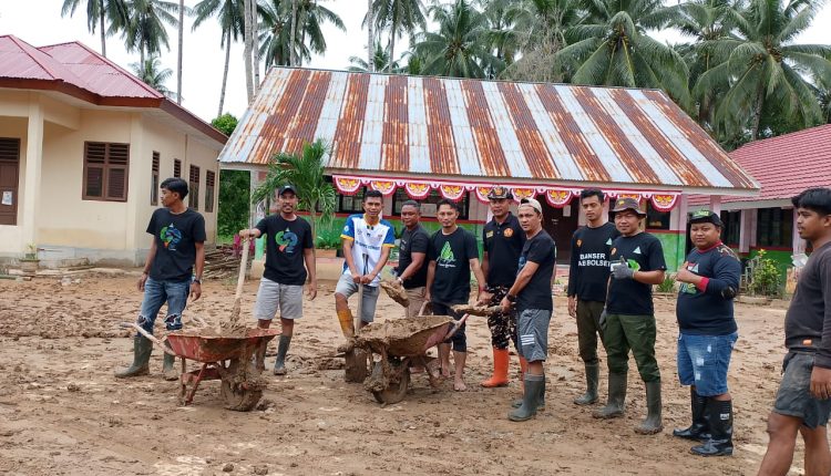 PAC GP Ansor Pinolosian, Panwascam dan PPK Gotong Royong Bersihkan Lumpur di SMP Negeri Kombot Akibat Banjir