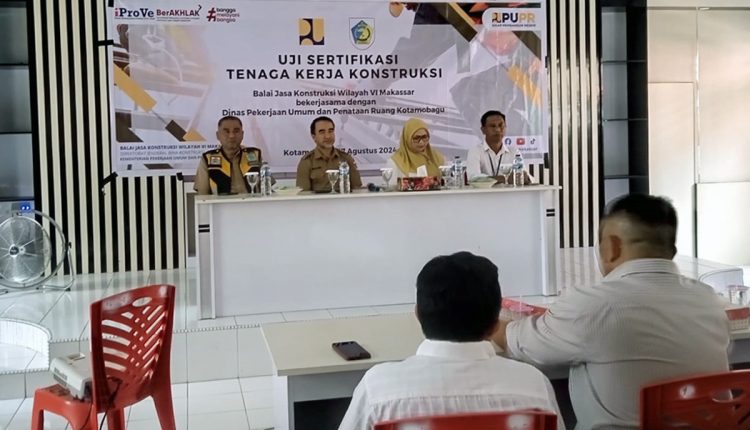 Telusur.news, KOTAMOBAGU — Pemerintah Kota (Pemkot) Kotamobagu melalui Dinas Pekerjaan Umum Penataan Ruang (PUPR), menggandeng Balai Jasa Konstruksi Wilayah VI Makassar untuk menggelar uji sertifikasi tenaga kerja konstruksi, pada Selasa (27/8/2024).