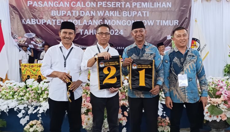 BOLTIM — 2 pasangan calon Bupati Dan Wakil Bupati Kabupaten Bolaang Mongondow Timur (BOLTIM) Sulawesi Utara (Sulut) resmi mendapat Nomor urut, Senin (23/09/2024).