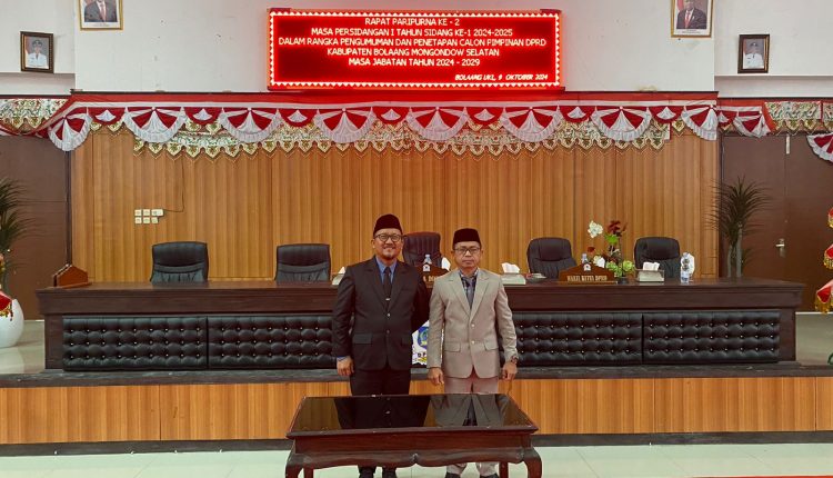 Telusur.news, BOLSEL – Dewan Perwakilan Rakyat Daerah (DPRD) Kabupaten Bolaang Mongondow Selatan (Bolsel), Menggelar rapat paripurna dengan agenda pengumuman dan penetapan calon pimpinan DPRD Kabupaten Bolsel definitif untuk masa jabatan 2024-2029. pada Rabu, 09 Oktober 2024.