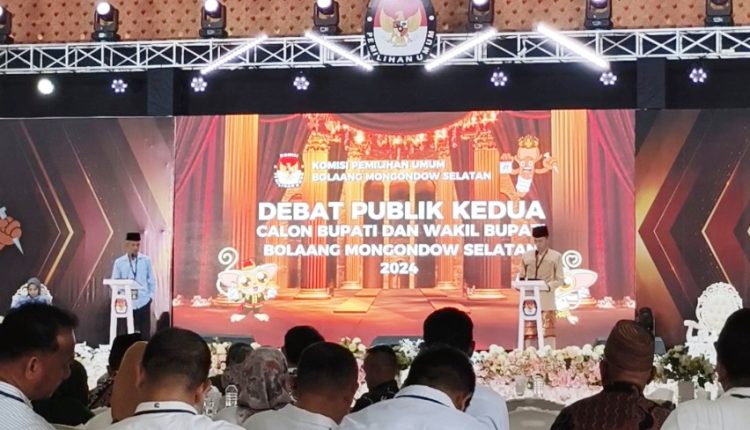 Telusur.news, BOLSEL – Debat publik kedua pasangan Bupati dan Wakil Bupati Kabupaten Bolaang Mongondow Selatan (Bolsel), yang di gelar oleh Komisi Pemilihan Umum (KPU) Bolsel, berlangsung cukup sengit dengan saling adu gagasan untuk memenangkan hati masyarakat.