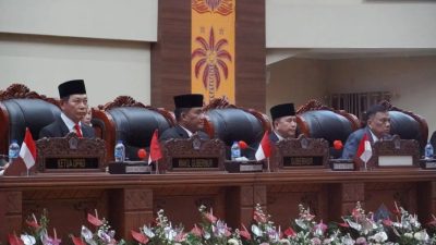 Telusur.news, MANADO – Bupati Kabupaten Bolaang Mongondow Selatan (Bolsel) H. Iskandar Kamaru, bersama Wakil Bupati Deddy Abdul Hamid, serta Ketua TP-PKK Kabupaten Ny. Hj. Selpian Kamaru-Manoppo dan Sekretaris TP-PKK Ny. Rosdiana Abdul Hamid-Lapatola, menghadiri acara Serah Terima Jabatan (Sertijab) Gubernur Sulawesi Utara (Sulut) serta Pelantikan Ketua TP-PKK Provinsi, Kabupaten, dan Kota se-Sulut. Acara ini berlangsung di Gedung DPRD Provinsi Sulawesi Utara, Kota Manado, pada Selasa, (04/03/2025).