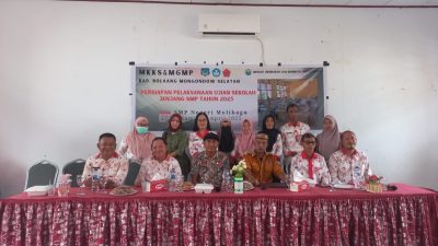 Telusur.news, BOLSEL – Dalam rangka memperkuat kesiapan pelaksanaan Ujian Sekolah Tahun 2025, Dinas Pendidikan dan Kebudayaan Kabupaten Bolaang Mongondow Selatan (Bolsel) menyelenggarakan kegiatan Musyawarah Kerja Kepala Sekolah (MKKS) dan Musyawarah Guru Mata Pelajaran (MGMP) jenjang Sekolah Menengah Pertama (SMP), pada Kamis (24/4/2025), bertempat di Molibagu.