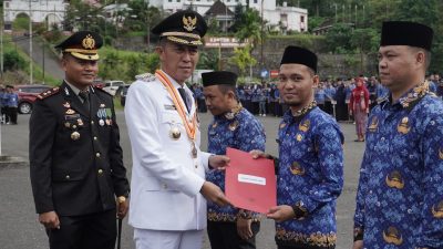 Telusur.news, BOLSEL – Jumat, 25 April 2025di Lapangan BKPSDM Kompleks Perkantoran Panango pagi tadi menjadi saksi upacara penuh khidmat dalam rangka memperingati Hari Otonomi Daerah (Otoda) ke-29. Bupati Bolaang Mongondow Selatan (Bolsel), H. Iskandar Kamaru, bersama Ketua TP-PKK Bolsel hadir langsung memimpin jalannya upacara yang dirangkaikan dengan peringatan Hari Kartini serta penyerahan SK CPNS.